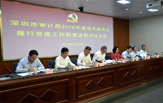 4月12日下午,为深入贯彻落实《中国共产党支部工作条例(试行)》《党支部书记履行党建工作职责考核办法(试行)》和市委组织部、市直机关工委有关工作要求,进一步增强管党治党责任意识,市审计局党组召开党支部书记2018年度履行党建工作职责述职评议会。会议由局党组成员、副局长郑奕新主持,局领导班子成员,经责局领导班子成员,机关“两委”委员,各党支部书记、副书记、支部委员以及部分党员代表参加会议。